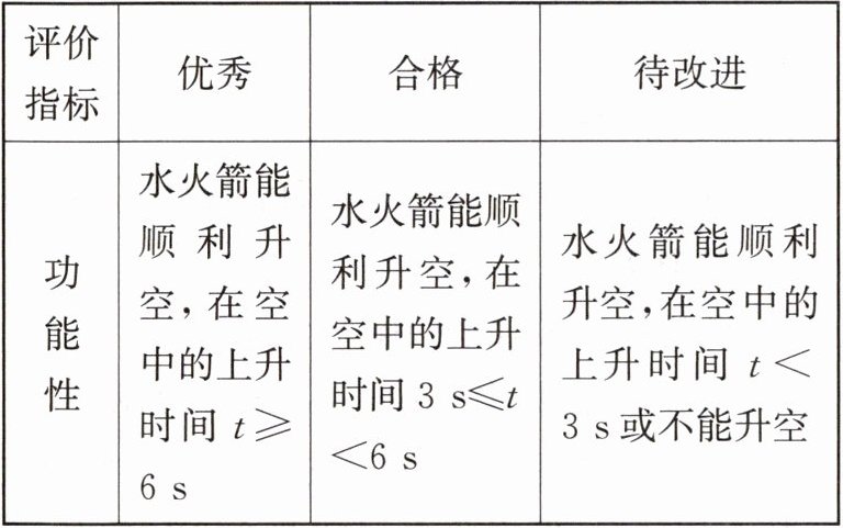 (4)如表所示为水火箭的部分评价量表。
