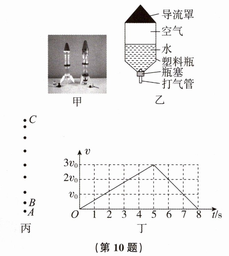 10. 某校项目化实验小组的同学们利用塑料瓶等材料制作水火箭(如图甲所示),并进行飞行高度测试实验。水火箭的结构如图乙所示。