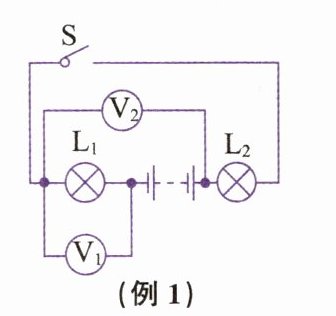【例 1】如图所示的电路中, 当开关 $ S $ 闭合时, 电压表 $ V_1 $ 的示数为 3 V, 电压表 $ V_2 $ 的示数为 6 V, 则电源电压为 ( )