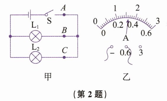 2. 某同学在实验课上设计了如图甲所示的电路图,探究并联电路中的电流规律。