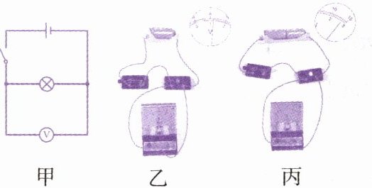 (2)按照如图甲所示的电路图连接电路(如图乙、丙所示),并测出灯泡两端的电压。