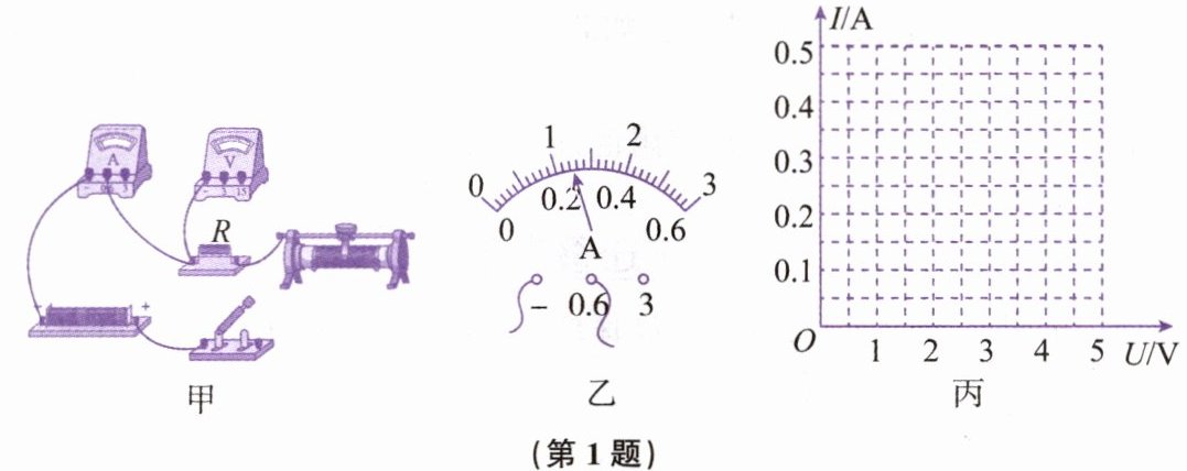 (2)实验中多次改变$R$的阻值,调节滑动变阻器的滑片,使电压表示数保持不变,记下电流表的示数,得到如图丙所示的电流$I随电阻R$变化的图像。