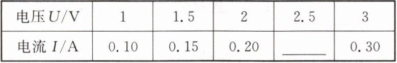 (3)排除故障,继续实验,当电压表示数为2.5V时,电流表示数如图乙所示为____A;多次实验,记录数据如表所示。