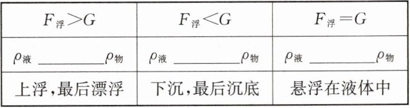 ($F_{浮}$为物体浸没在液体中受到的浮力,$G$为物体的重力)
