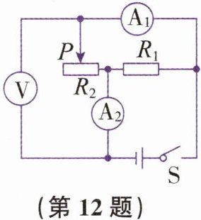 12. 在如图所示的电路中,电源电压保持不变,闭合开关S,将滑动变阻器的滑片P向左移动,下列说法中,正确的是(