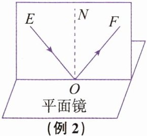 【例2】如图所示为小明探究“光的反射定律”的实验装置,在平面镜上放置一张由可以绕ON折转的E、F两部分组成的白色硬纸板。