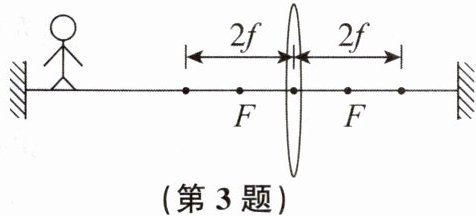 3. 在竖直放置的大凸透镜的主光轴位置上拉一根钢丝,一个杂技演员从很远的地方沿着钢丝向焦点处匀速走来。下列叙述中,正确的是 (
