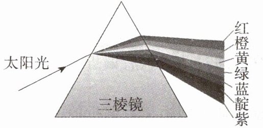 三棱镜把太阳光分解成不同颜色的光,它们按照一定的顺序排列,形成太阳光的