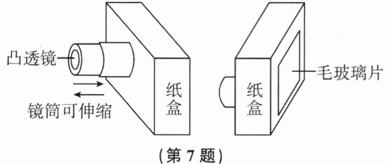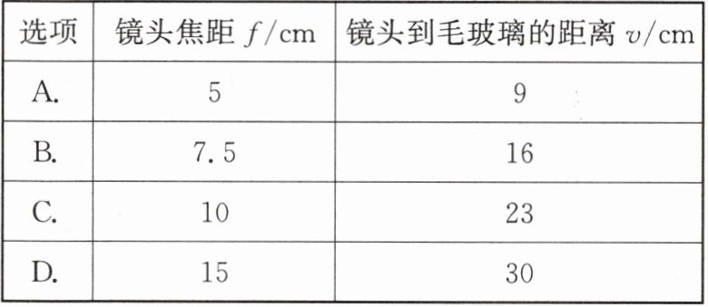 7. (2023春·台州市椒江区期末)项目化学习小组的成员制作了一个照相机模型(如图所示),使用不同的凸透镜作为镜头时,需调节镜头到毛玻璃片的距离才能得到清晰的像。下列组合中,能模拟照相机的原理的是(