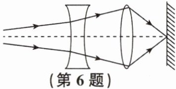 6. (2024春·温州市期末)为了研究近视眼的形成和矫正方法,小明用凸透镜、凹透镜和光屏制作了如图所示的模型,使像恰好成在光屏上。不改变光屏和凸透镜的位置,去掉凹透镜,则(