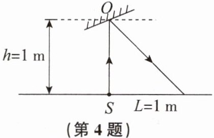 4. (2024春·嘉兴市平湖市期末)在水平桌面上有一光源S,发出一束竖直向上的光,射到桌面上方1 m处水平放置的平面镜O点上。当平面镜绕O点转动时,发现反射光点在水平桌面上移动了1 m,此时平面镜与水平方向的夹角为(