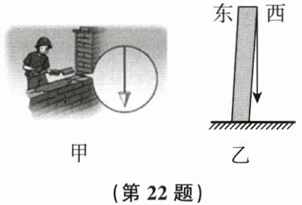 22. 建筑工人砌墙时,常利用重垂线来检查墙砌得是否竖直,如图甲所示,重垂线是根据重力方向总是