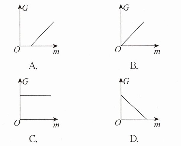 (3)另一名同学小陈,使用一把未经调零且指针指在0刻度线上方的弹簧测力计做本实验,画出重力与质量的图像,你觉得他画出的图像应该是下列选项中的