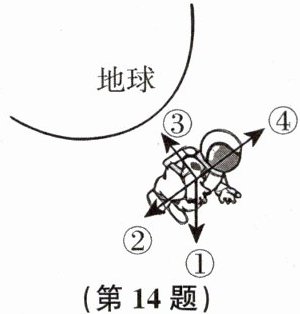 14. 某航天员的身高约1.75m,体重约68kg,如图所示为该航天员在出舱活动时的情境示意图($g_{地}$取10N/kg)。