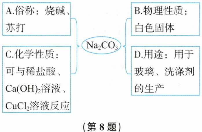 8. 小明在小组合作学习过程中,对碳酸钠的相关知识以结构图的形式进行了梳理。
