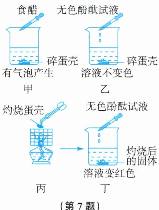 7. 探究鸡蛋壳成分的过程如图所示,下列说法中,正确的是 (