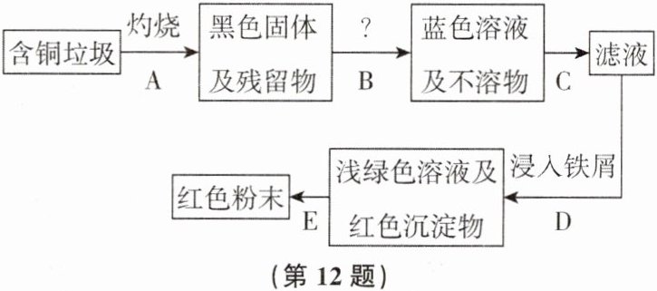 12. 某市有一家处理含铜垃圾的工厂,其生产流程如图所示: