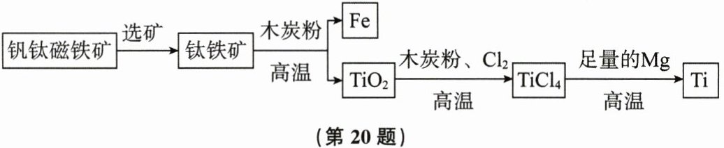 20. 纯钛是一种银白色的金属固体,密度小,硬度大,常温下易被氧化。由钒钛磁铁矿提取金属钛的主要工艺过程如图所示。