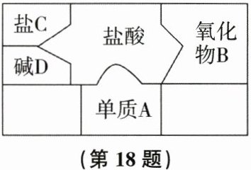 18. 如图所示为包含物质A、B、C、D和盐酸的化学拼图卡片,相邻两张卡片所标的物质(或其溶液)之间能发生反应。