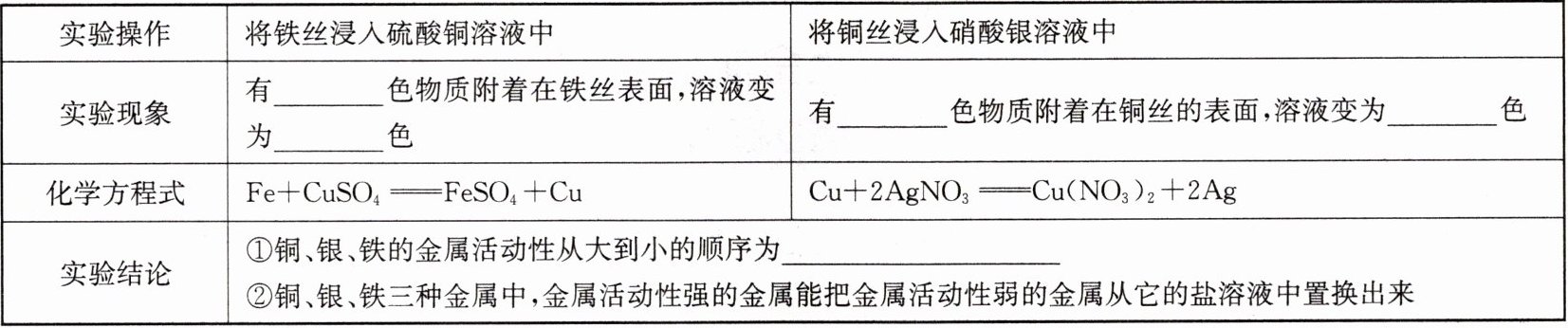 )(7) 金属的活动性只能用金属与盐溶液的置换反应来比较,不能用金属与酸或氧气反应来比较。(