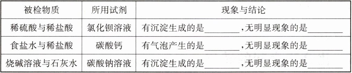 (1)稀硫酸 稀盐酸 稀盐酸 食盐水 石灰水 烧碱溶液