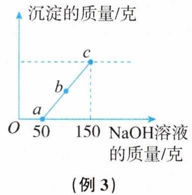 例3 (2023秋·台州市黄岩区期末)实验室用金属镁与稀盐酸反应来探究酸的性质。小黄取反应后的溶液100克,逐渐加入溶质质量分数为8%的NaOH溶液,产生沉淀质量与滴加溶液质量的关系如图所示。已知当NaOH溶液滴加至150克时不再有沉淀产生。