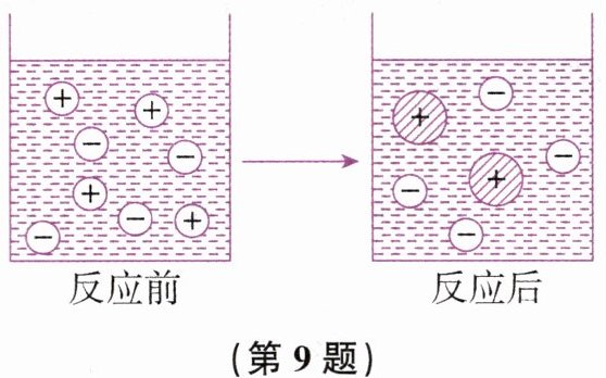9. 在盐酸中加入过量的某种金属粉末,反应的微观模型如图所示,图中圆圈表示该反应前后溶液中存在的主要离子。