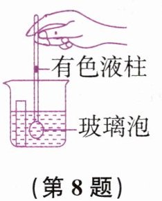 8. 化学反应常伴随着能量变化。如图所示,在装有盐酸的烧杯中放入一定质量的镁条,由于该反应会