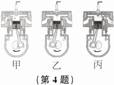 4. (2024秋·温州市瑞安市期末)如图所示为四冲程汽油机一个工作循环中的三个冲程,下列关于缺少的一个冲程的名称及顺序的判断,正确的是 (