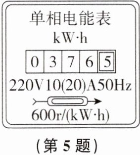 5. (2024秋·杭州市校级期末)如图所示为小金家的电能表,下列说法中,正确的是 (
