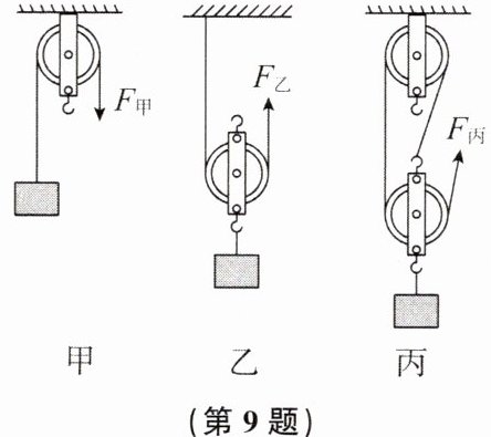 C. 绳子自由端的拉力$F_{甲}= F_{乙}= F_{丙}$