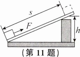 11. 如图所示,用沿斜面向上、大小为7.5牛的拉力F将一个重10牛的物体匀速拉到斜面的顶端,物体沿斜面移动的距离s为5米,上升的高度h为3米,则人对物体做的有用功是