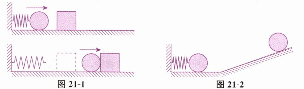 2. 小科探究影响物体弹性势能大小的因素时选择弹簧进行研究。将光滑水平面与光滑斜面连接,如图21-2所示。