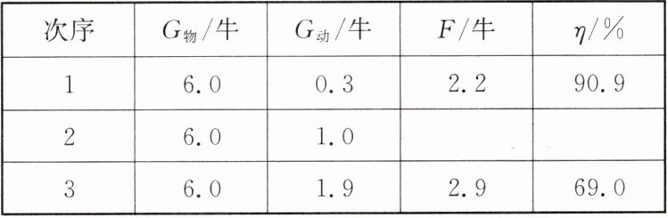 牛。(3)分析数据可知,在物重不变的情况下,动滑轮越重,滑轮组的机械效率越