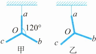 跟踪训练3-1 将三段铁丝拼接在同一个平面内,使彼此之间的夹角均为120°,悬挂后静止时如图甲所示。现将Oc段铁丝浸入某一无色溶液中,一段时间后取出晾干,悬挂后出现如图乙所示的现象,则该溶液可能是 (