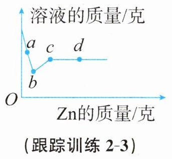 跟踪训练2-3 向一定质量$AgNO_3$和$Cu(NO_3)_2$的混合溶液中加入过量的Zn粉,溶液的质量与加入Zn的质量关系如图所示。