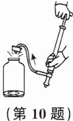 10. 如图所示,向瓶内装入少量水,并滴入几滴酒精,用打气筒向瓶内打气。当瓶塞跳出时,观察到瓶内出现大量白雾。下列说法中,正确的是 (