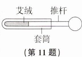 11. 如图所示为我国古代发明的取火器的模型图,把木质推杆迅速推入牛角套筒时,杆前端的艾绒立刻燃烧起来,这是通过