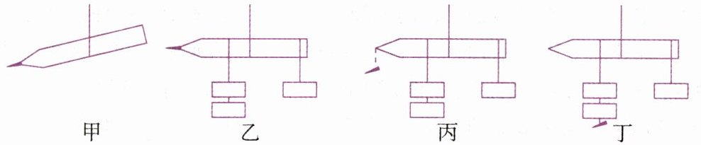 (3)在实验过程中,铅笔水平平衡后(如图23-3乙所示),小明不小心将前端细长的铅笔芯弄断了(如图23-3丙所示),他立即将断笔芯放到铅笔左端细线下方固定好(如图23-3丁所示),则松手后的笔