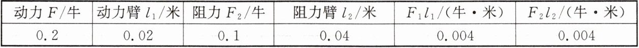 (4)改变力和力臂的数值,重复上述实验,共做4次,并记录有关数据。