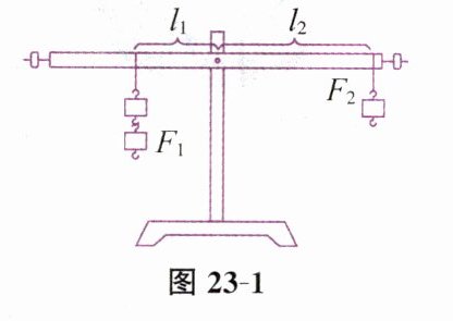 移动。(2)调节水平平衡后,他用细线绑定数量不等的橡皮挂在杠杆支点两侧,如图23-3乙所示,并将所测数据记录在表中。