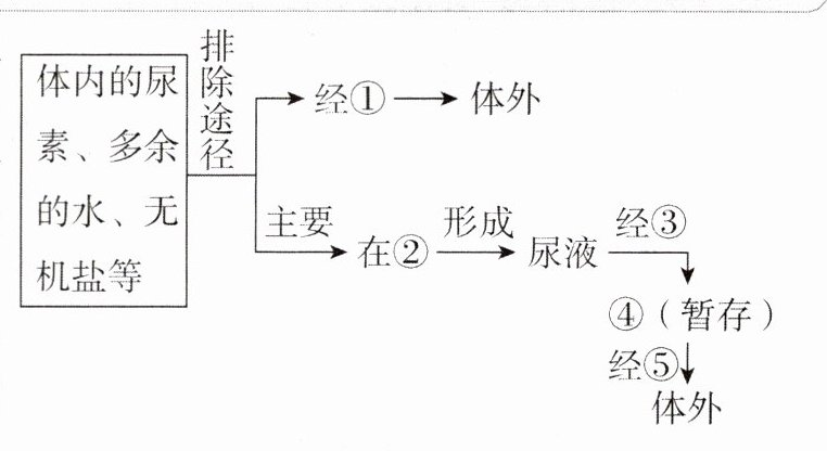 )A. 经①排出体外的物质中含有尿素