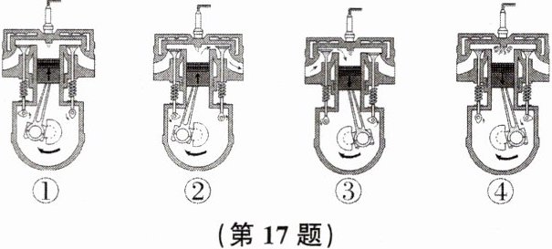 17. 发动机是汽车的核心部件,某汽车发动机是以92号汽油为燃料的内燃机。在某次测试中,汽车在$1.5×10^{3}秒内于水平路面上匀速行驶4.6×10^{4}$米,该过程中汽车的牵引力为$3×10^{3}$牛,汽车消耗汽油12千克,汽油的热值为$4.6×10^{7}$焦/千克。