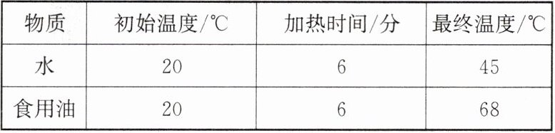 (2)用两套相同的装置分别给水和食用油加热6分钟后,水升高的温度比食用油升高的温度