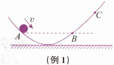 【例1】如图所示,光滑的弧形轨道竖直固定于水平面,小球由A点以速度v沿轨道滚下,经另一侧等高点B后到达最高点C。下列关于小球滚动过程的分析(不计空气阻力),错误的是 (
