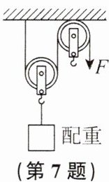 7. 为便于研究,某健身器材中训练拉力部分的机械结构可简化为如图所示的滑轮组。若不计摩擦,则下列分析中,正确的是(