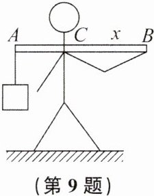 9. 工作人员运送东西时,将长为L、质量不计的木棒放在肩上C点,木棒的A端挂一个重为G的物体,他用手压住B端使木棒保持水平平衡,若用手压住B端不动,移动木棒,改变CB的长度,该长度记为x,则木棒对肩膀的压力F随x的变化关系图像为(