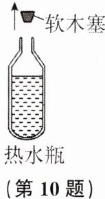 10. 如图所示为生活中常用的热水瓶,注入一定量的热水后,立即塞上软木塞,软木塞会跳起来。该过程中发生的能量转化为