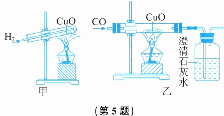 5. 如图所示,甲和乙分别是氢气和一氧化碳还原氧化铜的实验。下列说法中,正确的是(