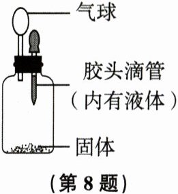 8. 若要使如图所示装置中的气球明显鼓起来,则使用的固体和液体可以是(